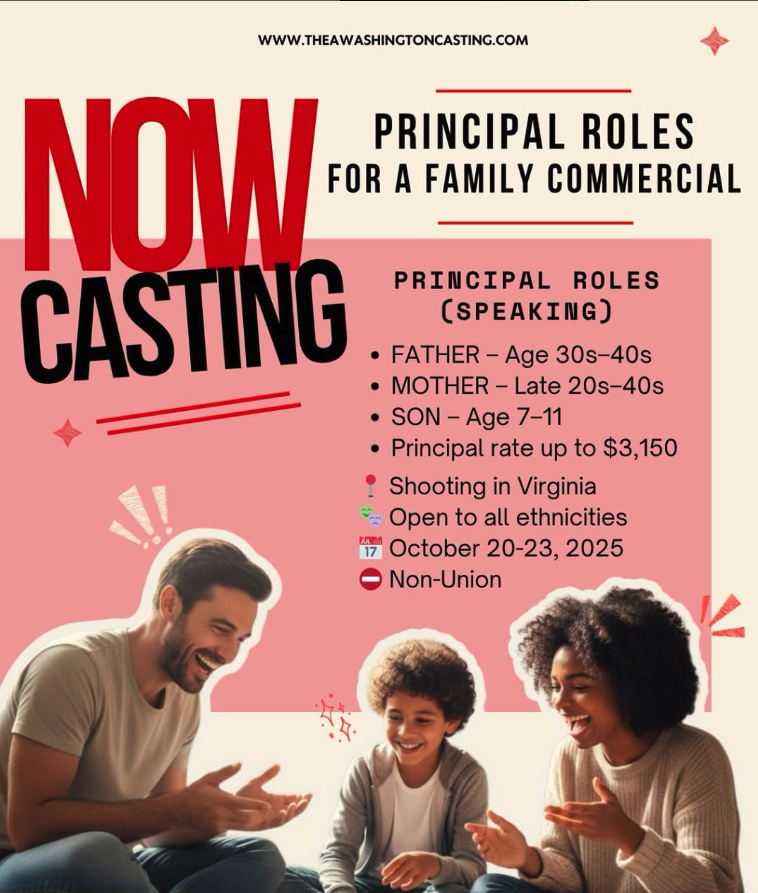 | NOW CASTING: URGENT CASTING: DMV Talent & Families |